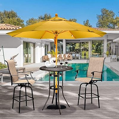 Patio umbrellas & shade fire pits. Even without using the lights, this canopy covers most patio tables and gives decent shade when needed. 1 out of 5 stars with 1 ratings. The stainless steel top with aluminum base, makes it extremely light and easy to clean and maintain. The round bar table is the ideal size to place as the centerpiece within the bar chairs to host snacks or drinks. Euro style allan round stainless steel pub table. Patiomore patio bar table, outdoor bar height bistro table with umbrella hole, metal steel frame and slat design (black) $99.99. Bbq gift sets bbq gifts under $50 bbq gifts under $100 bbq gifts under $200 bbq gifts under $300 bbqguys gift cards. This umbrella ia designed for bar height patio tables. Vicllax patio bar height bistro table outdoor umbrella bar table. Made from cast aluminum and featuring beautiful floral scrollwork, this table is perfect for an intimate conversation or as a place for your guests to set down their drink. As the sun sets, the lights use stored solar power from the included solar panel to turn on and provide light to your backyard party. The round bar table is the ideal size to place as the centerpiece within the bar chairs to host snacks or drinks.